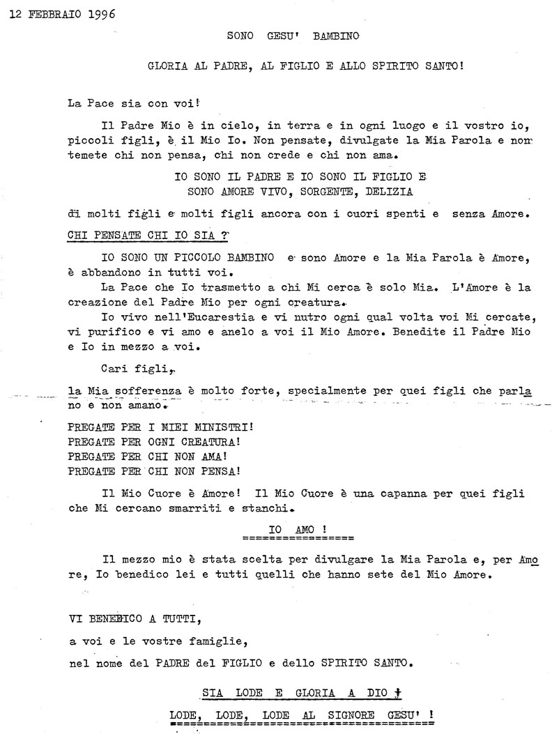 12 Febbraio 1996 - Casa del Padre Celeste
