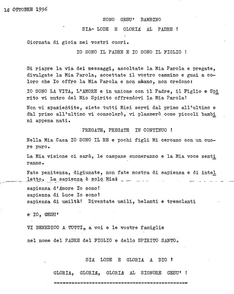 14 Ottobre 1996 - Casa del Padre Celeste