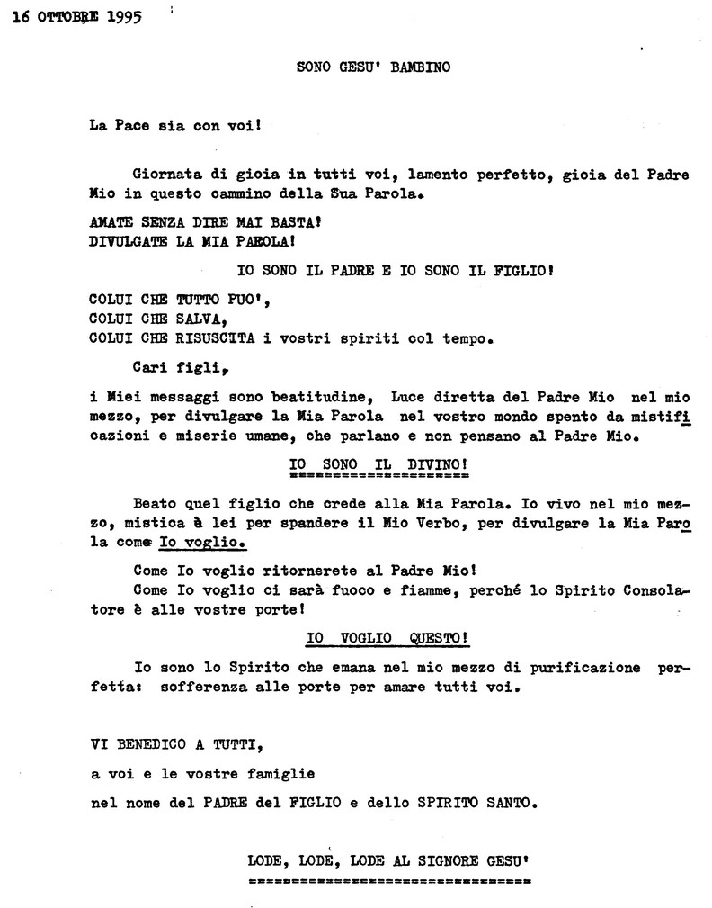 16 Ottobre 1995 - Casa del Padre Celeste