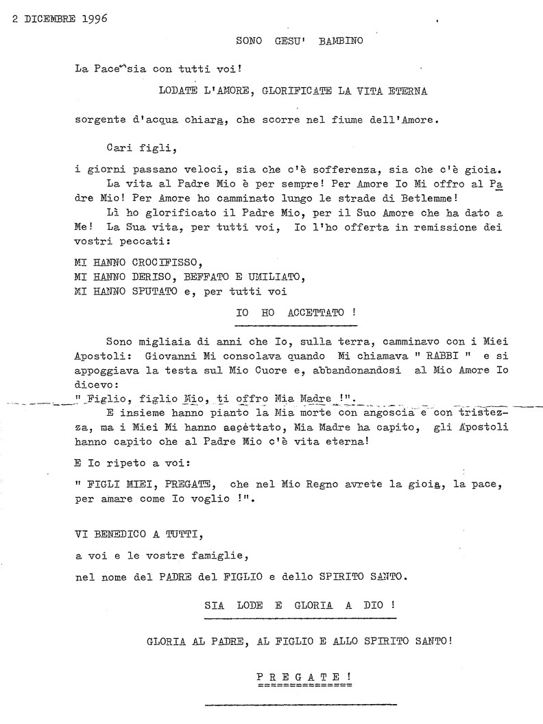 2 Dicembre 1996 - Casa del Padre Celeste