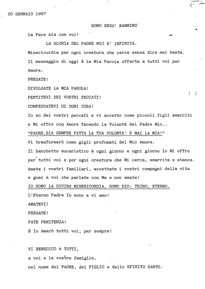 20 Gennaio 1997 - Casa del Padre Celeste