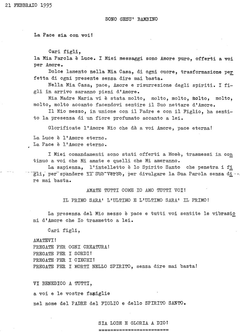 21 Febbraio 1995 - Casa del Padre Celeste