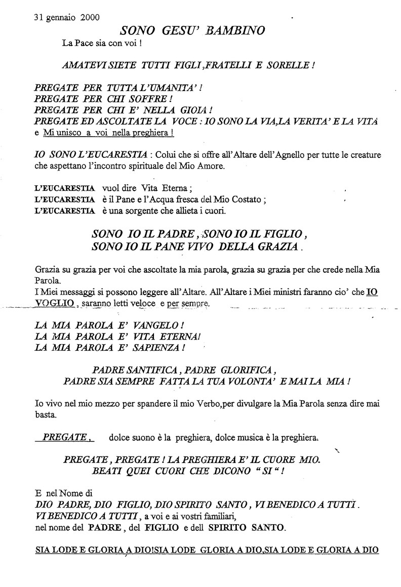 31 Gennaio 2000 - Casa del Padre Celeste