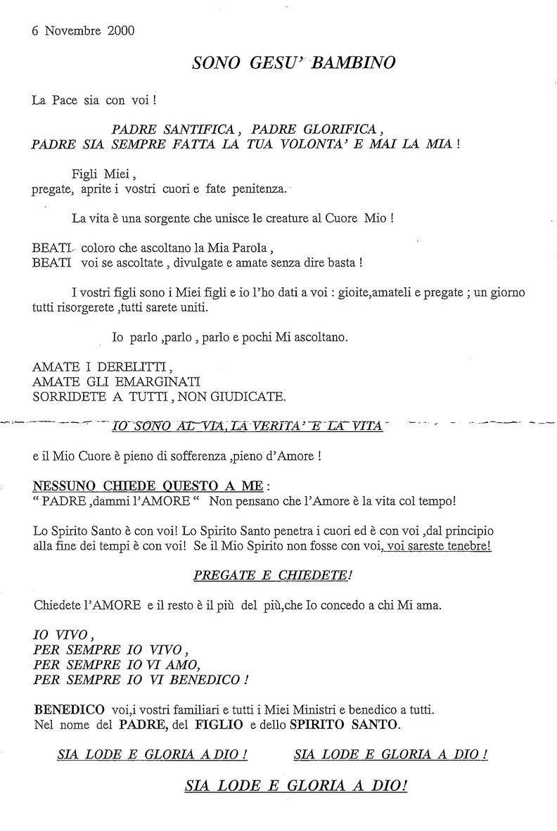 6 Novembre 2000 - Casa del Padre Celeste